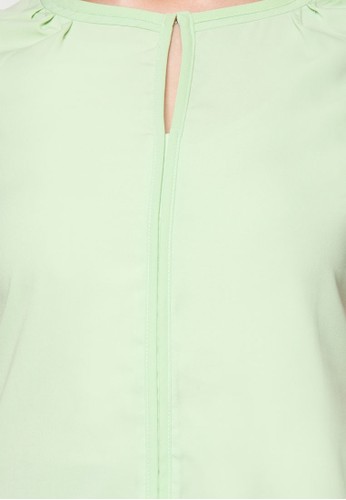 Chanira 的圓領短袖上衣,柔軟材質打造,配有鏤空細節圓領及褶飾設計,簡約且俏麗百搭。